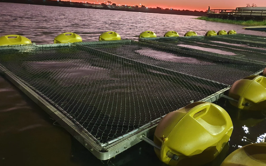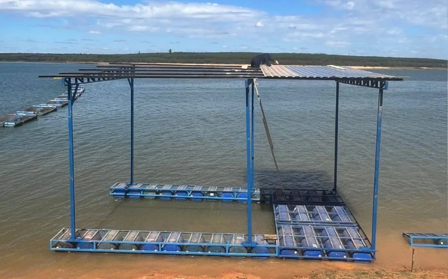 Segurança e praticidade na criação de peixes. As plataformas Telametal oferecem suporte firme para alimentação, manejo e monitoramento, facilitando o trabalho do produtor.